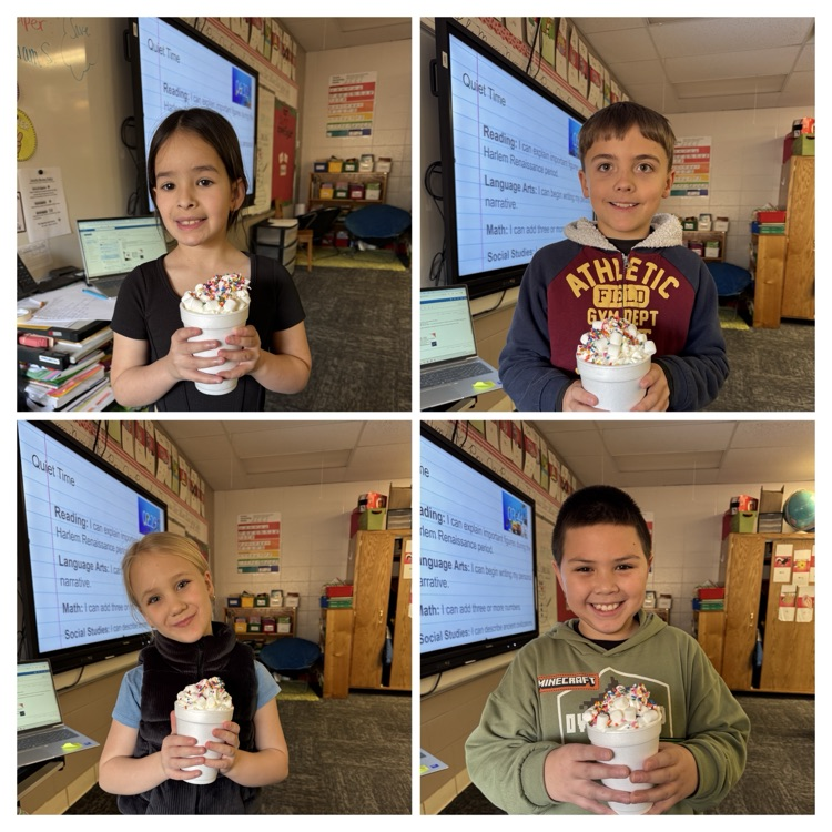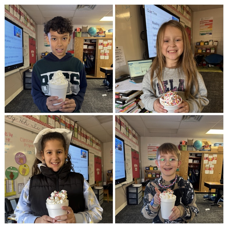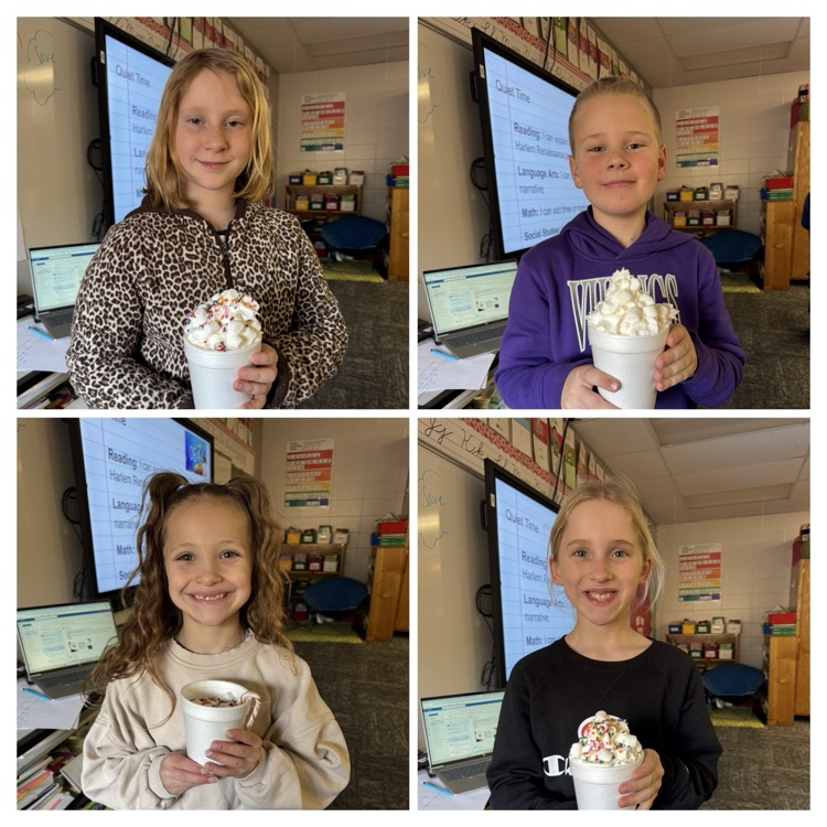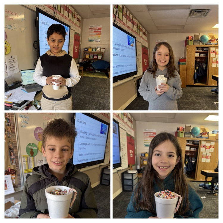 These hard working third graders in Mrs. Stacey's class completed a Winter Break Bingo game over Christmas break to earn hot chocolate! It was delicious!